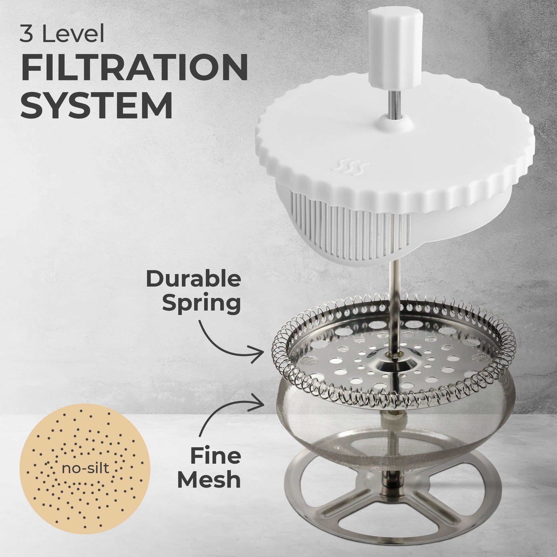- Precision Filtration: Stainless steel mesh filter captures grounds for a smooth brew.