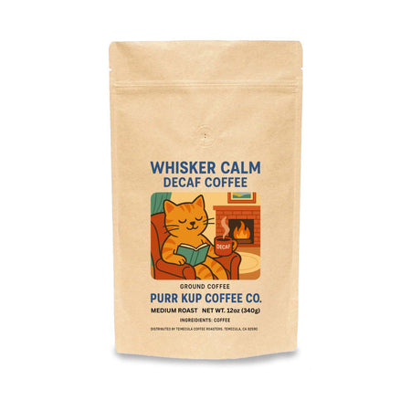 Curl up and sip in peace — the Purr Kup Decaf Collection is made for cats who love the ritual of coffee but could do without the caffeine zoomies. Each roast is gently decaffeinated to keep its natural charm, revealing smooth caramel, toasted nut, cocoa and spice notes that purr with flavor and comfort.